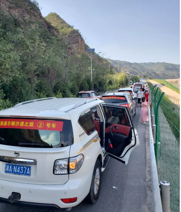 2019年7月23日、24日,先鋒車隊(duì)持續(xù)打卡,黃河壺口瀑布、中共中央西北局、延安棗園。沙漠之旅——我們?cè)诼飞稀?/p>