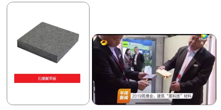 產(chǎn)品一:石墨聚苯板 通過現(xiàn)場的燃燒實驗,可以看出石墨聚苯板的阻燃性明顯高于普通聚苯板。